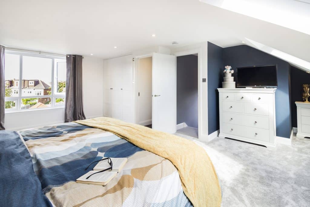 The result here is a much larger bedroom, more natural light from 3 sides of the room, space for storage and bespoke carpentry and even room to grow into it as well. A lovely space created in only 8 weeks, with no planning permission needed, a simple process, but great impact.